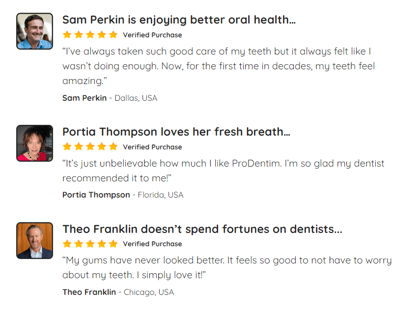 “Sensitive teeth has been an issue of mine for years. I was a bit skeptical when I saw Prodentim, especially since I had already tried another supplement brand, but I must say…I’ve noticed a significant decrease in sensitivity. I’m extremely impressed!”