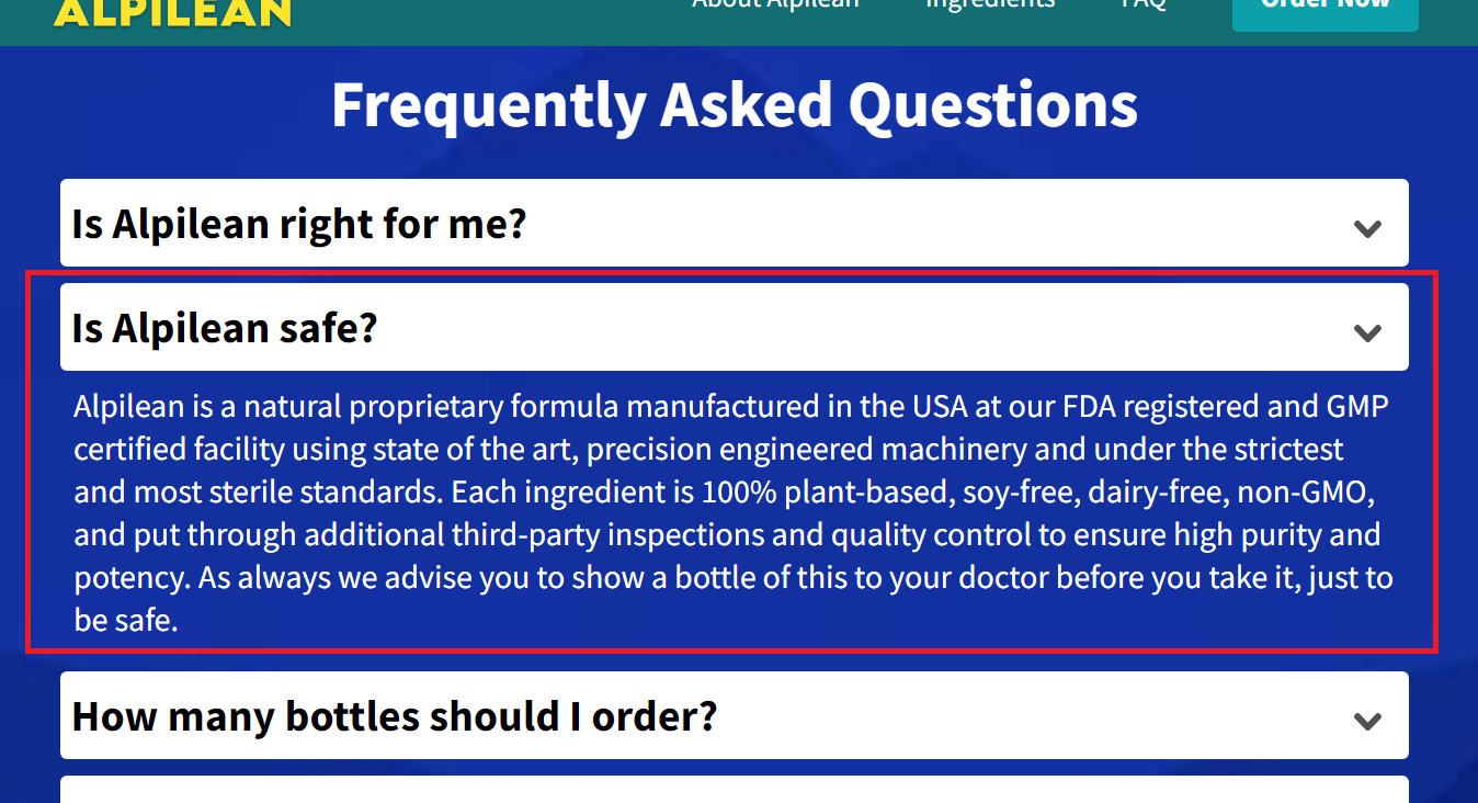 The question with these types of supplements, still remain: Are they safe? Is Alpilean safe?